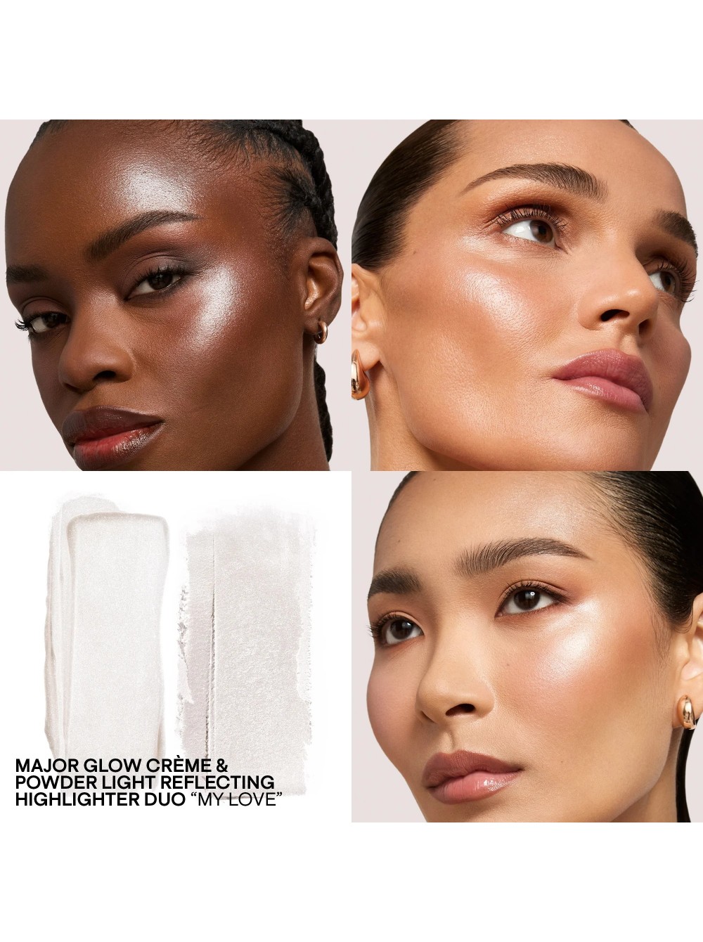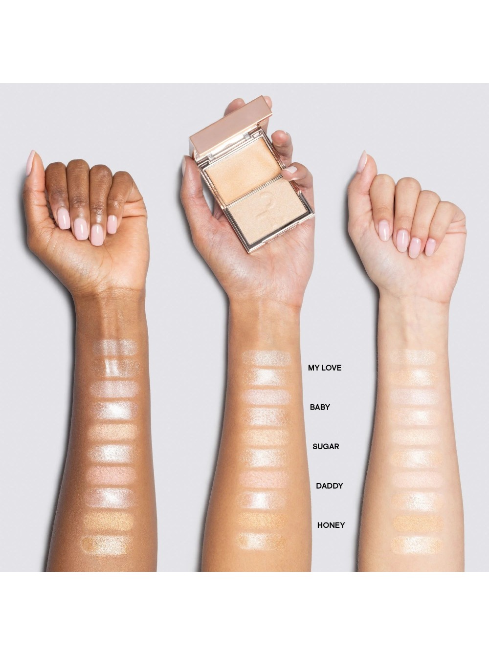 Палетка кремового и пудрового хайлайтеров, которые позволяют коже сиять. Придают ультратонкое мерцание и нежный румянец.